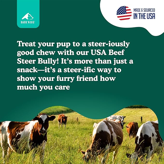 BARK'N BIG USA Beef Steer Sticks for Dogs 5-6 Inch Mini Bully Sticks - Natural Single Ingredient Dog Chews for Small Dogs & Puppies - Made in USA - 15 Count