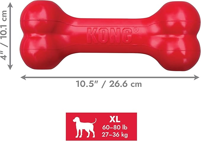 KONG Goodie Bone - Classic Durable Natural Rubber Dog Bone, Supports Mental Engagement - Treat Dispensing - Red - for Extra Large Dogs
