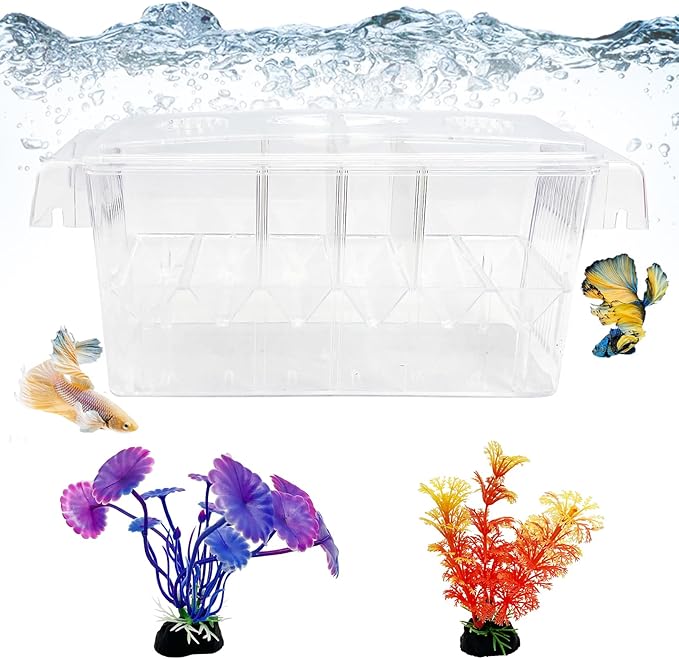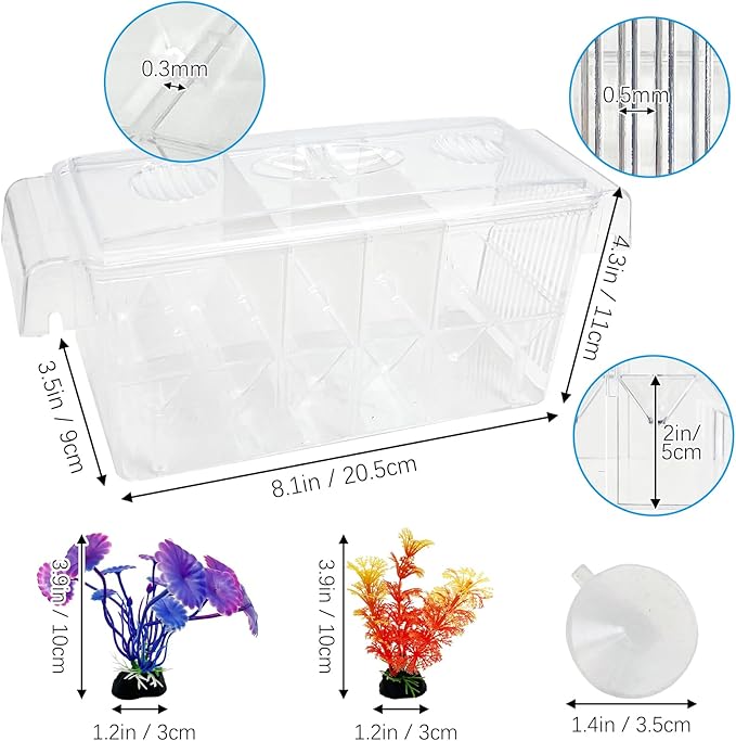 Tfwadmx Fish Breeding Box - 4 Rooms HD Aquarium Breeder with Suction Cups, Baby Hatchery Acrylic Incubator Isolation Box, Artificial Plant for Guppy Hatchery