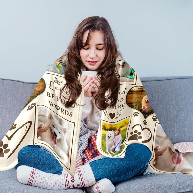 - 【Pet Remembrance Gifts】 Each pet loss sympathy blanket is designed to provide emotional warmth and comfort. You can also gift this to your friend, sister, brother, colleague, dog lover, cat lover, or anyone who just lost their pet, to help them through the tough time. Each dog blanket is printed the photo in clear and vivid color. Ideal for dog memorial gifts, cat remembrance gifts personalized, or as a thoughtful bereavement present for loved ones.
