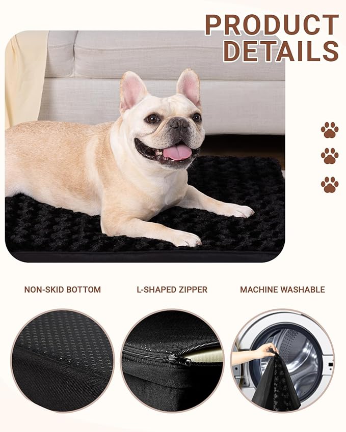KSIIA Dog Crate Bed Waterproof Large Dog Bed Soft Rose Velvet Supportive Kennel Pad Egg Crate Foam with Removable Washable Cover & Non-Slip Bottom, 35 x 22 Inch, Black