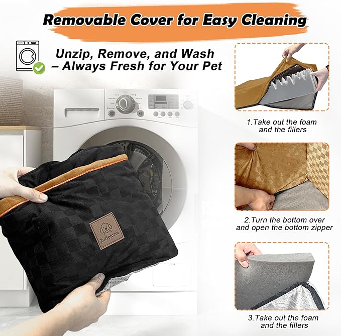 Large Dog Car Seat for Back Seat – Removable Dog Booster Seat & Washable Pet Car Seat for Medium & 2 Small Dogs up to 60lbs – Safety Straps & Storage Pocket – Travel & Home Use (Black/Brown)