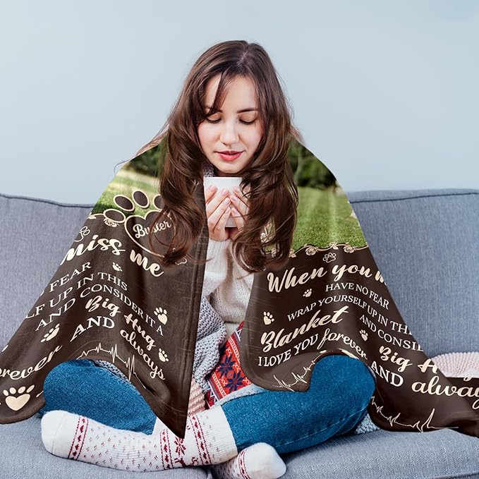 - 【Pet Remembrance Gifts】 Each pet loss sympathy blanket is designed to provide emotional warmth and comfort. You can also gift this to your friend, sister, brother, colleague, dog lover, cat lover, or anyone who just lost their pet, to help them through the tough time. Each dog blanket is printed the photo in clear and vivid color. Ideal for dog memorial gifts, cat remembrance gifts personalized, or as a thoughtful bereavement present for loved ones.