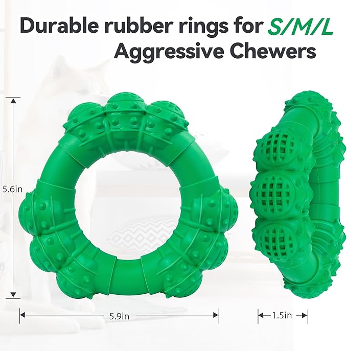 Indestructible Dog Chew Toys for Aggressive Chewers, Super Dog Chewer Toys for Medium Large Dogs, Interactive Dogs Ring Toy, Heavy Duty Teething Toys