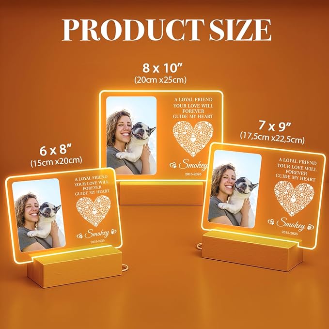 - 🐾 Home Decor 🐾 Our pet bereavement gifts double as a touching souvenir and a stylish room enhancement. These dog remembrance gifts fit perfectly in the living room, bedroom, or fireplace, with custom photos preserving precious memories—when night falls, the warm glow of love will light your way.