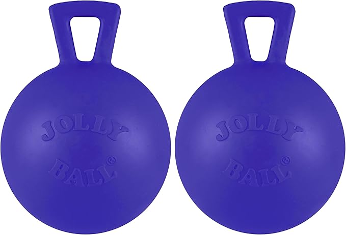 Jolly Pets Tug-n-Toss Heavy Duty Dog Toy Ball with Handle, 4 Inches/Petite, Blue (404 BL),Small Breeds (Pack of 2)