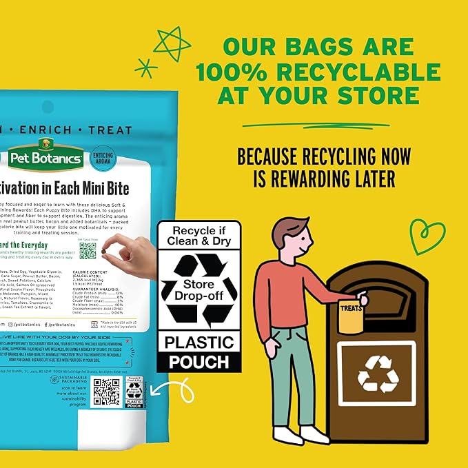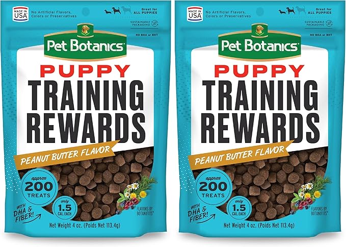 Pet Botanics 4 oz. Pouch Training Rewards Puppy Bites Soft & Chewy, Peanut Butter Flavor, with 200 Treats Per Bag, The Choice of Top Trainers (Pack of 2)