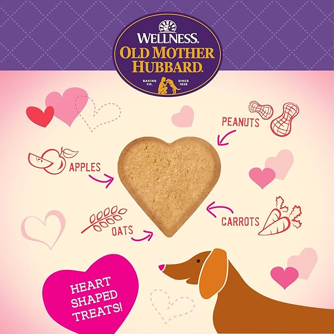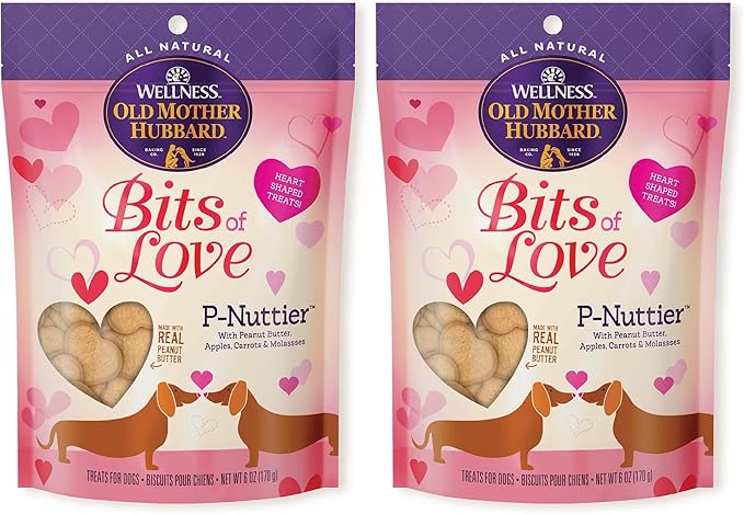 Old Mother Hubbard Wellness Bits of Love P-Nuttier Dog Biscuits, Natural, Seasonal, Valentine's Day Treats, Peanut Butter Flavor, (6 Ounce Bag) (Pack of 2)
