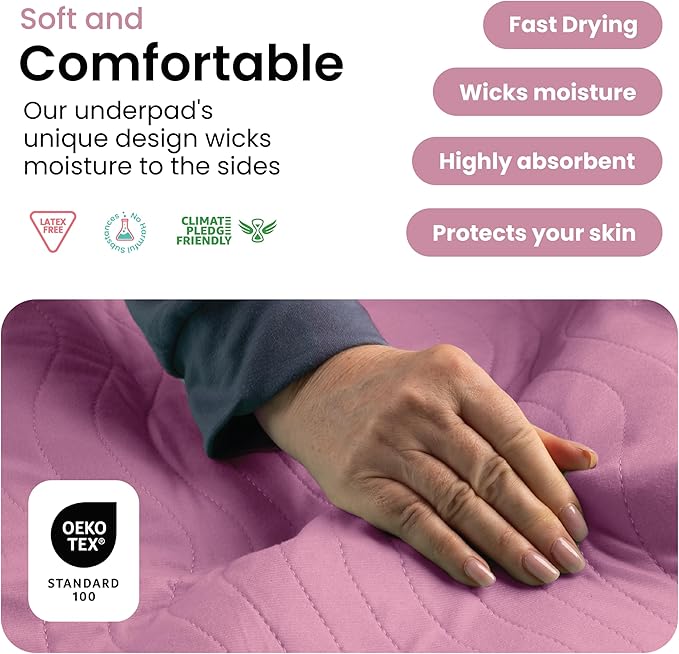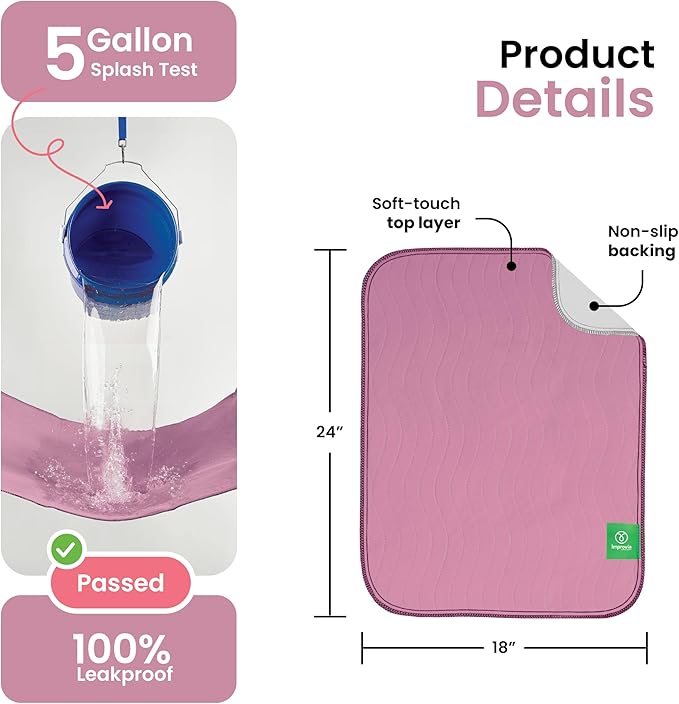 IMPROVIA® Washable Underpads, Heavy Absorbency Reusable Incontinence Pads for Kids, Adults, Elderly, and Pets, Waterproof Protection Floor (Pink and White, 18" x 24" - Pack of 4)