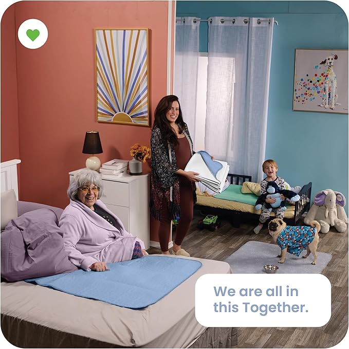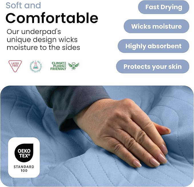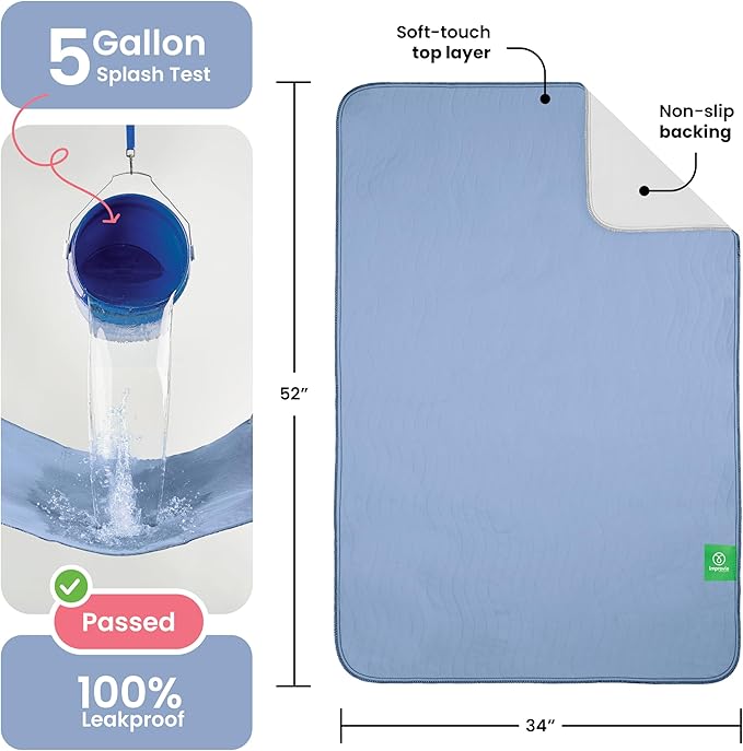 IMPROVIA® Washable Underpads, Heavy Absorbency Reusable Incontinence Pads for Kids, Adults, Elderly, and Pets, Waterproof Protection Floor (Blue, 34"x52" (Pack of 2))