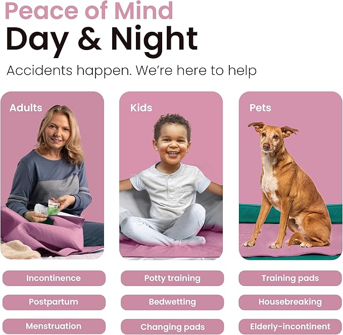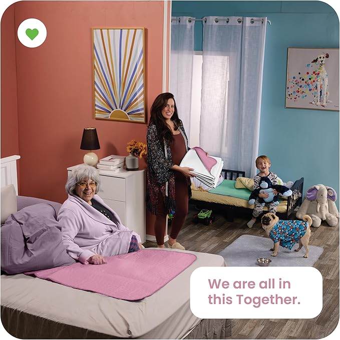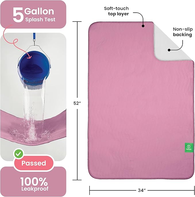 IMPROVIA® Washable Underpads, Heavy Absorbency Reusable Incontinence Pads for Kids, Adults, Elderly, and Pets, Waterproof Protection Floor (Pink and White, 34" x 52" - Pack of 2)