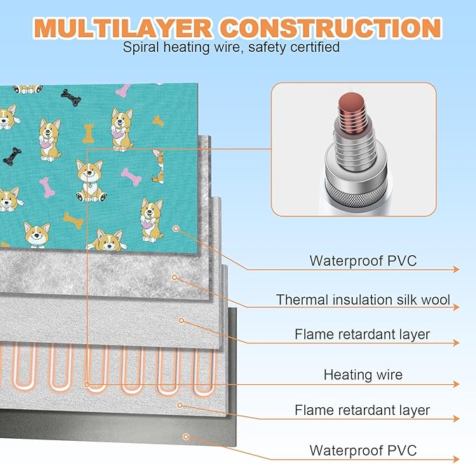 Large Pet Heating Pad (30x47in) Temperature Adjustable Dog Cat Heating Pad with Timer, Waterproof Heated Cat Bed Mat with Chew Resistant Cord