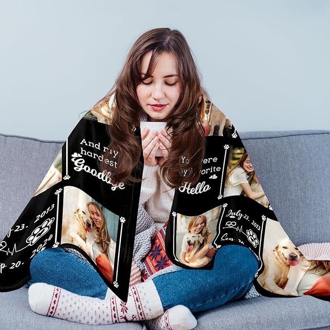- 【Pet Remembrance Gifts】 Each pet loss sympathy blanket is designed to provide emotional warmth and comfort. You can also gift this to your friend, sister, brother, colleague, dog lover, cat lover, or anyone who just lost their pet, to help them through the tough time. Each dog blanket is printed the photo in clear and vivid color. Ideal for dog memorial gifts, cat remembrance gifts personalized, or as a thoughtful bereavement present for loved ones.