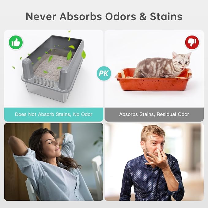 About This 【Extra Large Size】 The XL stainless steel litter box measures 23.5" X 15.6" X 13", providing a spacious... Read more