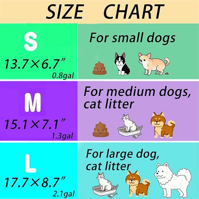 - Versatile and convenient: These pet poop bags are perfect for more than just dog waste. Use them for cat litter, baby diapers, sanitary products, or any daily smelly trash. They're a must-have for pet owners who value hygiene and odor control at home, on the go, dog walking or while traveling