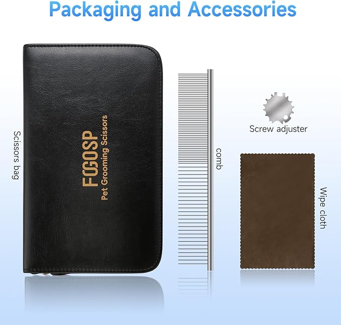 - Suitable for: FOGOSP pet scissors is lightweight, easy to hold, sharp and durable, with an extremely high cost performance. It is very suitable for families and novice groomers. Let you have a great experience of the gentle cutting feel of professional pet scissors. From then on, You will fell in love with giving pet a haircut.
