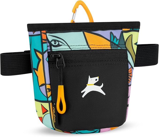 - EXPRESSIVE STYLE: The Goodie Treat Bag is available in 2 different styles, solid colors or prints for whatever style best suits you and your dog! We recommend pairing with our Scoop Pick Up Bag (sold separately) for some colorful training accessories!