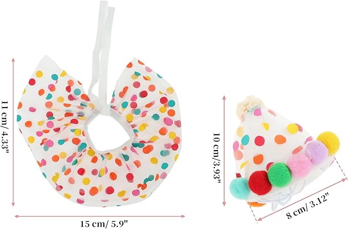 - Unique & Fashionable Design: Featuring vibrant colorful dots, the costume for cats bandana and hat showcase a stylish design that enhances your pet's look with a fashionable touch