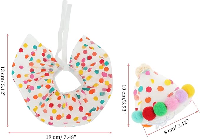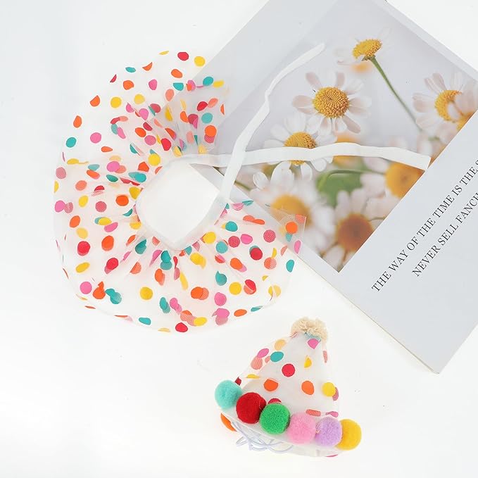 - Unique & Fashionable Design: Featuring vibrant colorful dots, the costume for cats bandana and hat showcase a stylish design that enhances your pet's look with a fashionable touch
