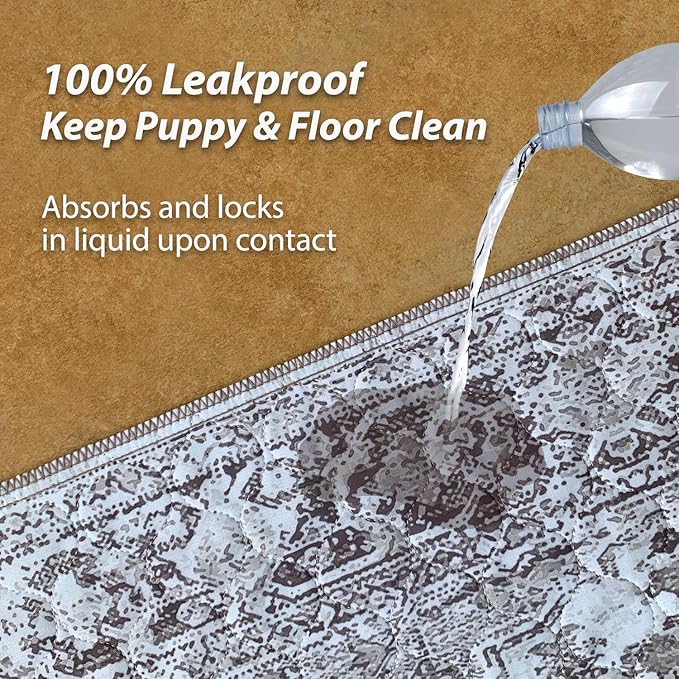 nunubaby 4PACK Washable Pee Pads for Dogs, Stylish, Non-Slip and Leak-Proof Pee Pads. Reusable Potty Pads for Dogs for Crates and Floors.(Brown/Geo, 24" x48")
