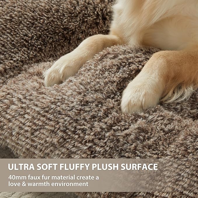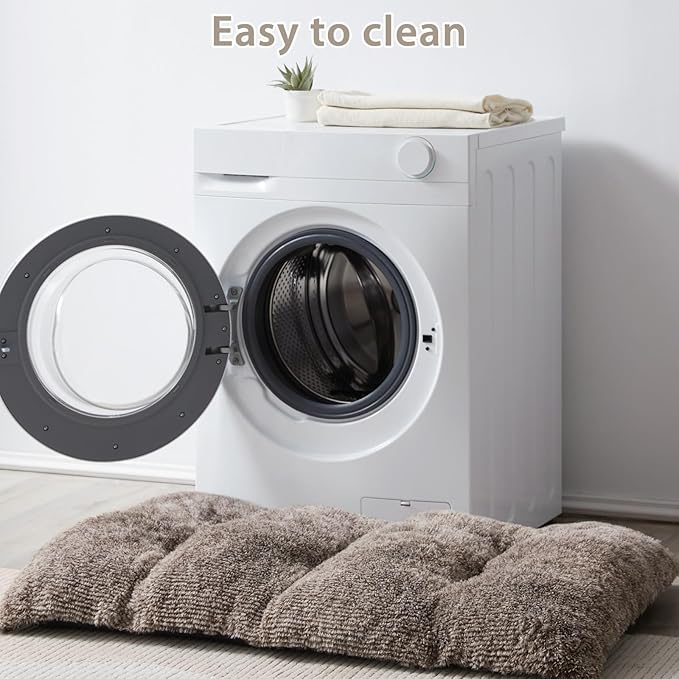 BFPETHOME Dog Beds for Large Dogs, Plush Dog Crate Bed Fluffy Cozy Kennel Pad for Sleeping &Ease Anxiety, Washable Pet Mats with Anti-Slip Bottom for Large Dogs, Khaki