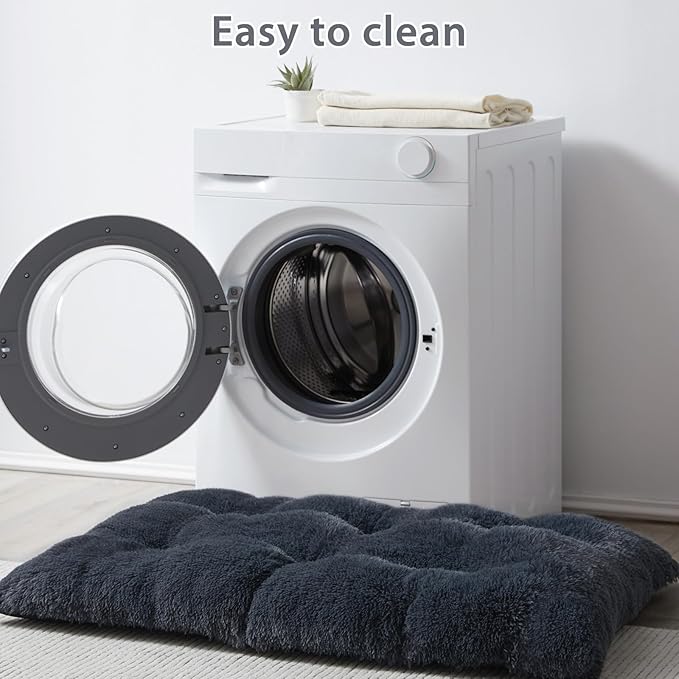 BFPETHOME Dog Beds for Large Dogs, Plush Dog Crate Bed Fluffy Cozy Kennel Pad for Sleeping &Ease Anxiety, Washable Pet Mats with Anti-Slip Bottom for Large Dogs, Navy