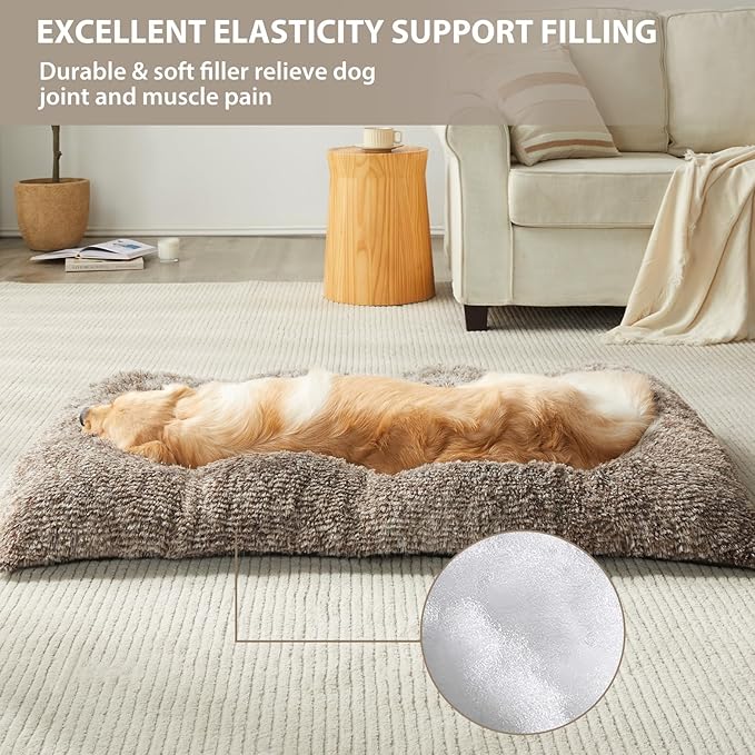 BFPETHOME Dog Beds for Large Dogs, Plush Dog Crate Bed Fluffy Cozy Kennel Pad for Sleeping &Ease Anxiety, Washable Pet Mats with Anti-Slip Bottom for Large Dogs, Khaki
