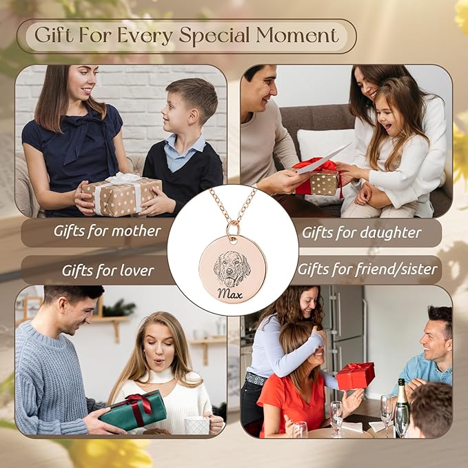 - 【Custom Pet Portrait Name Necklace】: Click "Customize Now", upload your pets photo, customize the pets name and message, and create a unique sketch-style portrait necklace. Let the angels be with you, this is a gift prepared with care
