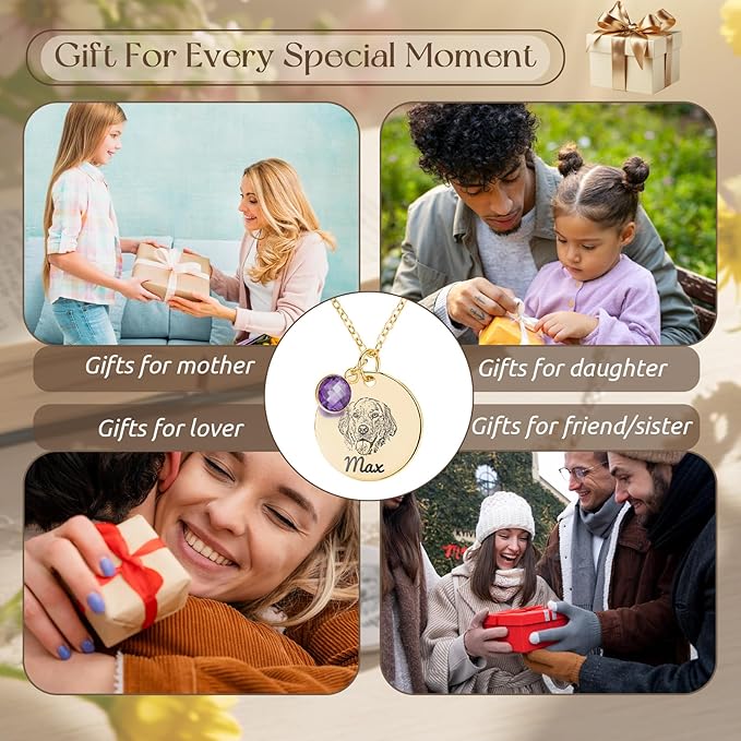 - 【Custom Pet Portrait Name Necklace】: Click "Customize Now", upload your pets photo, customize the pets name and message, and create a unique sketch-style portrait necklace. Let the angels be with you, this is a gift prepared with care
