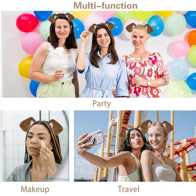 Beviliu Dog Ears Golden Movable, Realistic Animals Ears Headband Brown, Fluffy Cat Bunny Bear Costume Halloween Christmas for Washing Makeup Cosplay Birthday Party