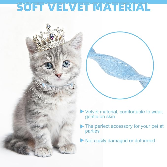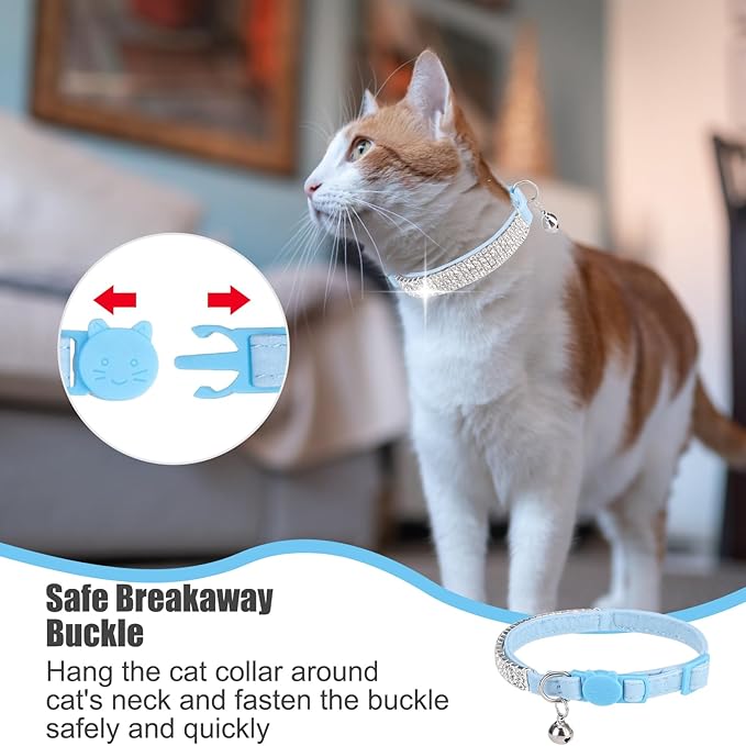 EXPAWLORER Soft Velvet Safe Cat Collars for Girl Cats - Rhinestones Bling Diamante Adjustable Collars Breakaway- Chirstmas Cat Clollar Gifts with Bells for Boy Cats Kitty and Small Dogs