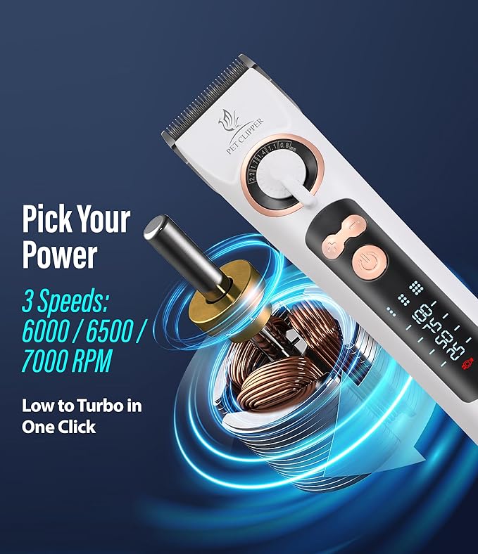 - 【3-Speed Power & Precision Control】 Our professional-grade motor offers three precise speed settings (6000/6500/7000 RPM). Use low speed for sensitive areas and fine detailing, medium for regular trimming, and high power to effortlessly blast through thick, matted, or knotted fur without pulling.