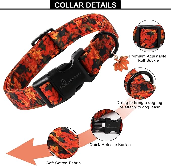 ARING PET Puppy Fall Dog Collar, Autumn Orange Maple Leaf Pet Collars for Small Medium Large Girl Boy Dogs Thanksgiving Halloween-XS Size
