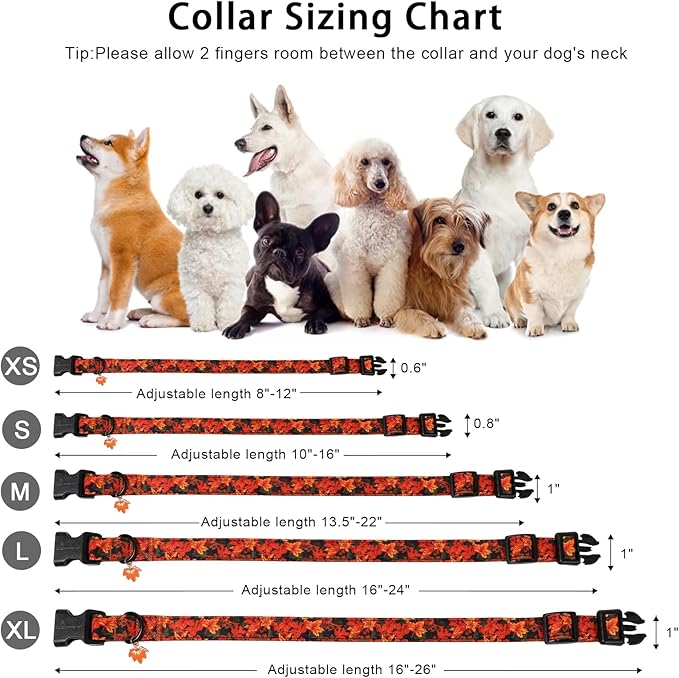 ARING PET Puppy Fall Dog Collar, Autumn Orange Maple Leaf Pet Collars for Small Medium Large Girl Boy Dogs Thanksgiving Halloween-S Size