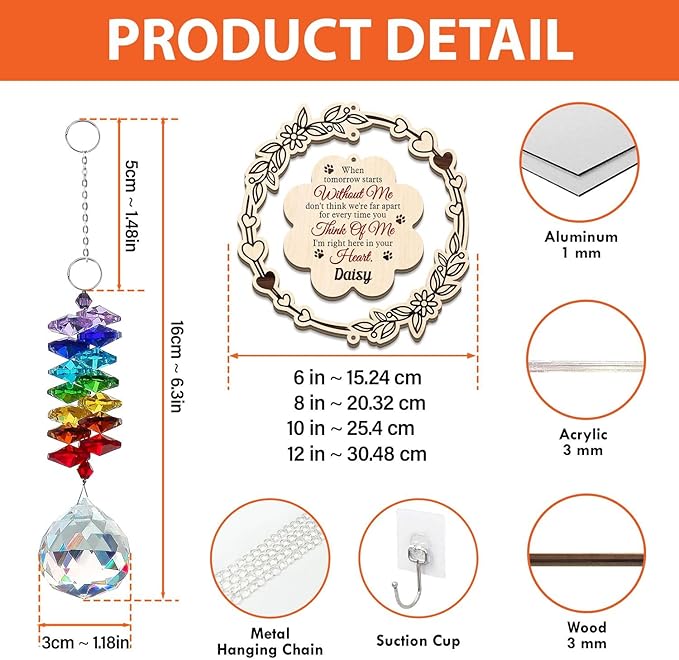 Personalized Dog Memorial Gifts, Sun Catcher Paw Print Sympathy Gift for Dog Lover, Crystal Suncatcher Remembrance Gift, Rainbow Maker