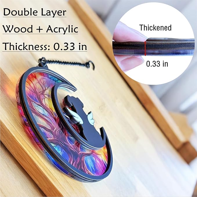 - 【What’s Included】- 1 thickened double-layer sun catcher, 1 chain, 1 hook and 1 pen. Sun catcher Size is 5.4" X 5.1", Thickness is 0.37".