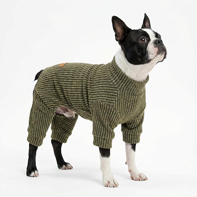 Fitwarm Mock Neck Knited Dog Pajamas, Warm Winter Clothes for Small Dogs Boy Girl, Pet Apparel, Olive Green, XL
