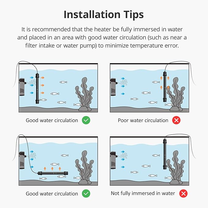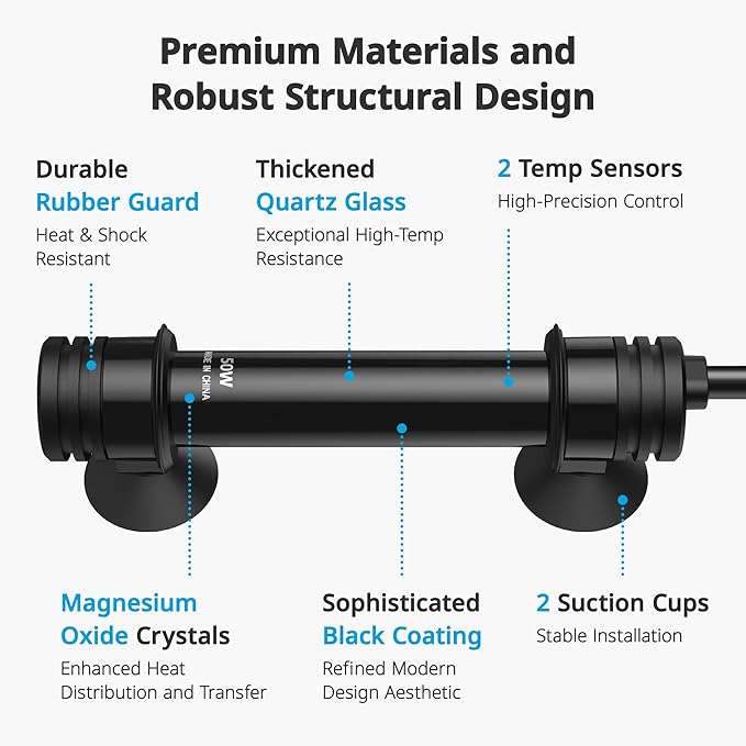 NICREW 50W Aquarium Heater with Temperature Adjustable Controller & Dual Sensors, 5-10 Gallon Submersible Fish Tank Heater, Overheat Protection
