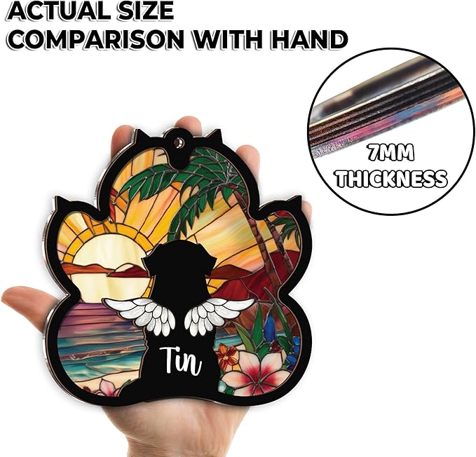- Personalized Pet Loss Keepsake: Crafted from 5mm wood and 2mm acrylic, each custom suncatcher includes angel wings and your pet’s name. A touching way to remember your dog with a design that reflects your love and their spirit.