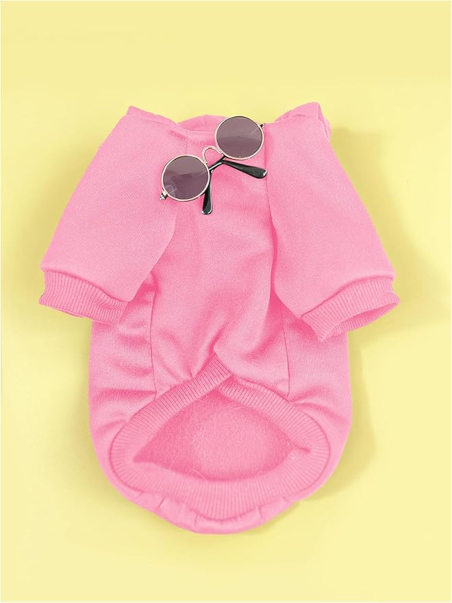 QWINEE 3Pcs Dog Hoodie Cat Apparel Dog Custume Set with Necklace and Sunglasses Pet Clothes for Puppy Small Medium Dogs Cats Light Pink Medium