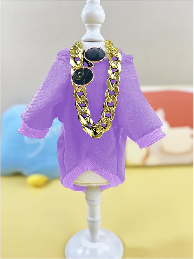 QWINEE 3Pcs Dog Hoodie Cat Apparel Dog Custume Set with Necklace and Sunglasses Pet Clothes for Puppy Small Medium Dogs Cats Mauve Purple X-Large