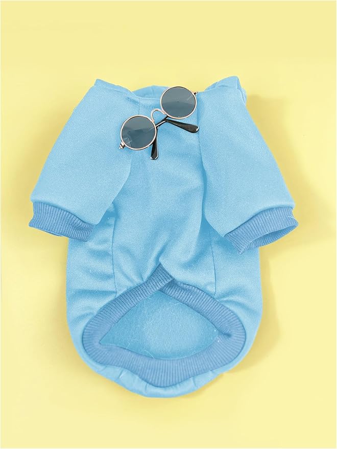 QWINEE 3Pcs Dog Hoodie Cat Apparel Dog Custume Set with Necklace and Sunglasses Pet Clothes for Puppy Small Medium Dogs Cats Light Blue XX-Small