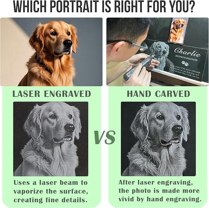 - Natural Granite Durability – Crafted from solid natural black granite, resistant to weathering, UV rays, and harsh temperatures. Engraving won’t fade, even in direct sunlight or heavy rain. 3. Personalized Customization – Personalize via Amazon Customization Tool with your pet’s name, dates, and a heartfelt message. Optional paw print or heart symbol.