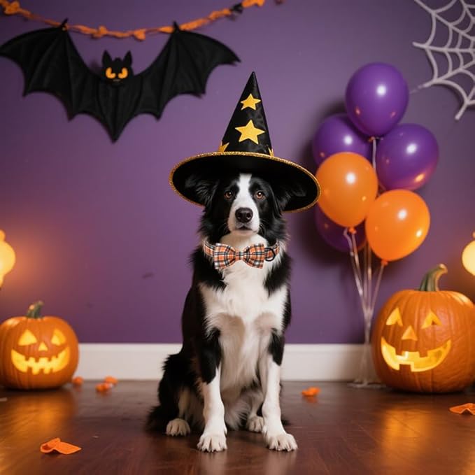Lionet Paws Fall Halloween Dog Collar with Black Orange Grid, Cotton Thanksgiving Bowtie Collar, Light Adjustable Collars for Small Medium Large Dogs