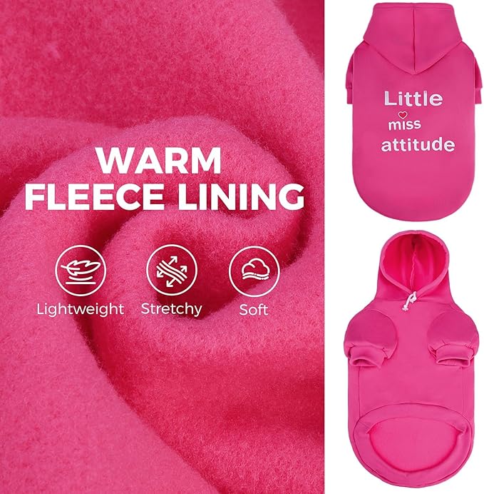 BINGPET Little Miss Attitude Dog Sweater with Hood and Leash Hole,Warm Fleece Dog Hoodie & Winter Coat for Small to Large Dogs,Cold Weather Pet Clothes(Medium)