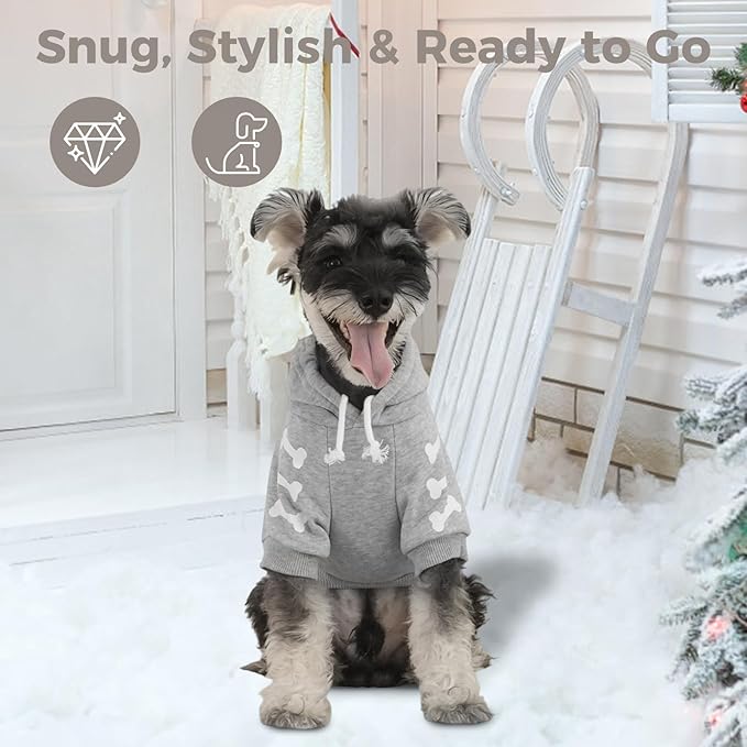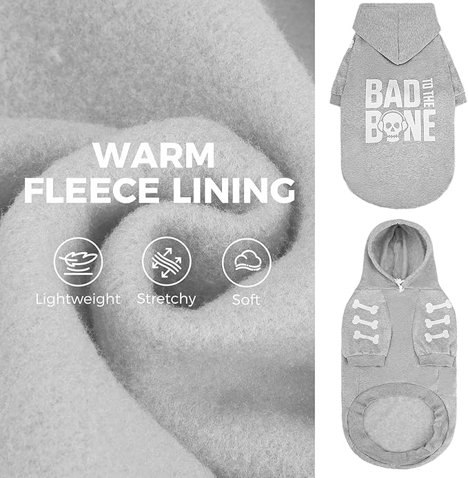 BINGPET Bad to The Bone Dog Sweater with Hood and Leash Hole,Warm Fleece Dog Hoodie & Winter Coat for Small to Large Dogs,Cold Weather Pet Clothes(Medium)