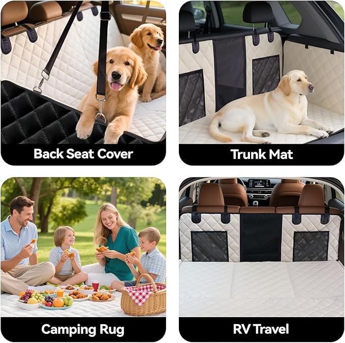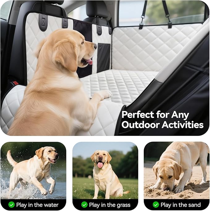 Hard Bottom Car Seat Cover for Dogs, PU+Plush Dog Car Seat Cover for Back Seat, Waterproof Backseat Extender for Dogs in Car (White, XL - Full-Size SUVs & Trucks)