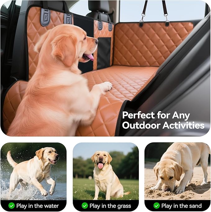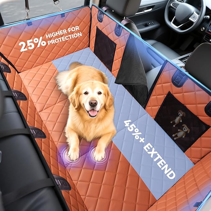 Hard Bottom Car Seat Cover for Dogs, PU+Plush Dog Car Seat Cover for Back Seat, Waterproof Backseat Extender for Dogs in Car (Brown, L - Cars, Small/Mid-Size SUVs & Trucks)