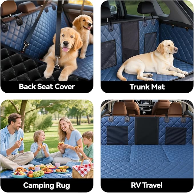 Hard Bottom Car Seat Cover for Dogs, PU+Plush Dog Car Seat Cover for Back Seat, Waterproof Backseat Extender for Dogs in Car (Navy Blue, XL - Full-Size SUVs & Trucks)