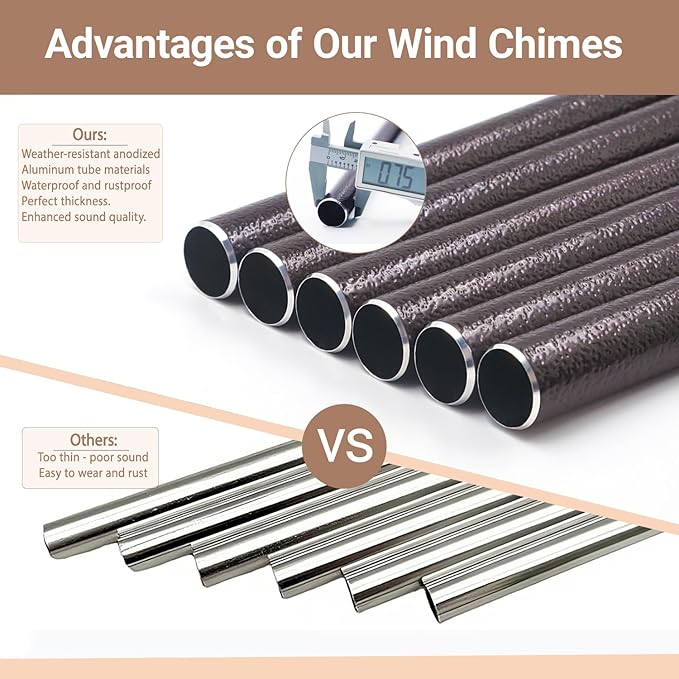 - 【Premium Outside Wind Chimes】Wind chimes are made of 6 anodized aluminum tubes,weatherproof metal with Anti-Tarnish Coating.The memorial wind chime is 35 inches long from the S hanging to the bottom wind catcher.Wind chime is perfect decoration for hanging in the garden, patio, porch, backyard and other decorative areas. It is an unique addition to your outdoor activities, and the soothing sound of the wind chime will bring long-lost relaxation